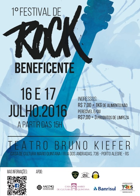 O 1º Rock Beneficente vai acontecer no Teatro Bruno Kiefer e tem início marcado para às 15h, em ambos os dias. A entrada custa apenas R$ 7,00 + 1 Kg de Alimento não Perecível e/ou R$ 7,00 + 3 produtos de limpeza. Saiba mais clicando aqui.