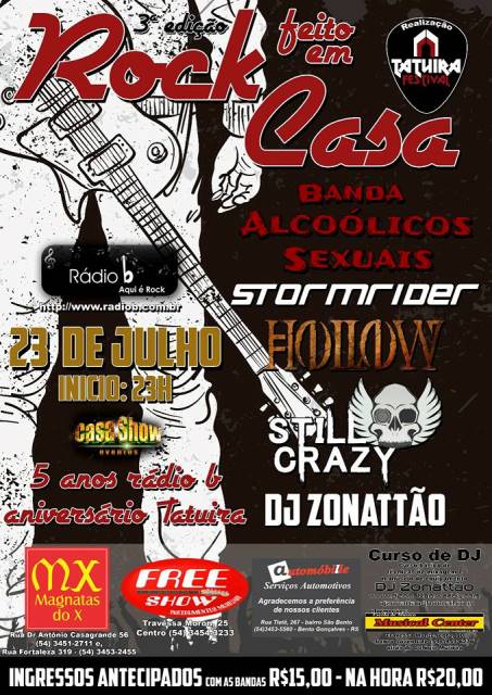 A banda de Death/Thrash Metal Hollow se apresentará em Bento Gonçalves amanhã, dia 23 de julho (sábado), comemorando o aniversário de cinco anos da Rádio B.