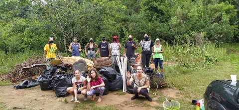 Lidi Keche é a responsável pelo grupo Tamoios de Ubatuba, que na hora atendeu ao chamado do Overdose Nuclear: “o grupo no qual ela faz parte que tem feito um trabalho incrível, inclusive a ‘live’ que fizemos foi para tentar angariar fundos para eles, e enfim chegou o dia de trabalharmos juntos com os Tamoios de Ubatuba com a direção da Lidi Keche. Botamos a mão na massa e juntamos muito lixo, das mais variadas fontes possíveis, um local tão bonito usado como lixão e local de sexo e uso de drogas. Agradeço imensamente a todos do grupo pela experiência, nunca havia participado de um mutirão desses e me arrependo de não ter feito antes e espero poder participar de muitos mais daqui pra frente! Bora se organizar pra desorganizar, jogue a porra do lixo no lugar certo e em breve vocês vão ter um novo videoclipe diretamente dos legítimos representantes do Metal do Mangue caiçara!”.