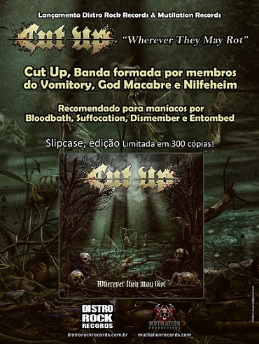 As gravadoras Distro Rock e Mutilation relançarão no mercado nacional, em formato slipcase e edição limitada a 300 cópias, “Forensic Nightmares” (2015) e “Wherever They May Rot” (2017), álbuns lançados pelo Cut Up. O grupo sueco foi formado em 2014 pelos músicos advindos do Vomitory – Erik Rundqvist (vocal e baixo), Tobias “Tobben” Gustafsson (bateria) e Anders Bertilsson (guitarra) –, além de Andreas “Björte” Björnson (guitarra e vocal).