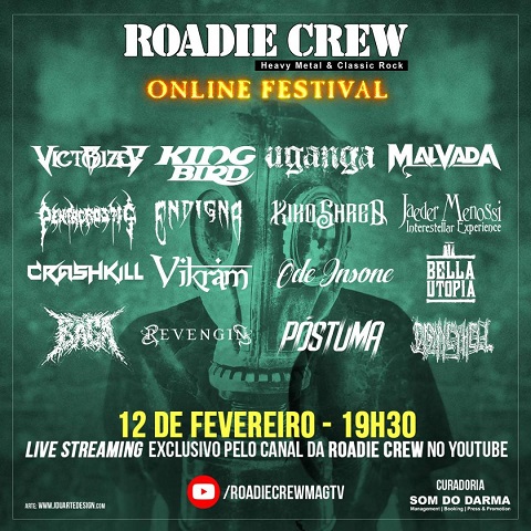 A revista Roadie Crew, em parceria com a produtora Som do Darma, apresentam nesta sexta-feira, dia 12 de fevereiro, às 19h30, a décima-primeira edição do “Roadie Crew - Online Festival”.