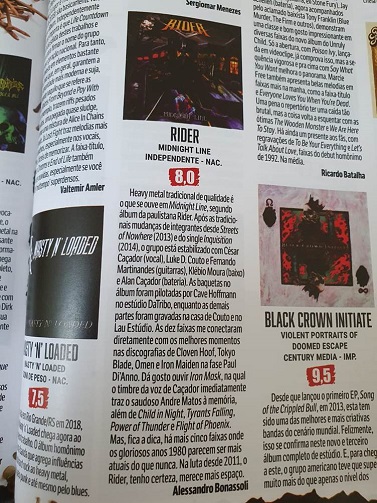“Midnight Line”, segundo álbum da banda de Heavy Metal Rider, recebeu uma crítica muito positiva na revista Roadie Crew.