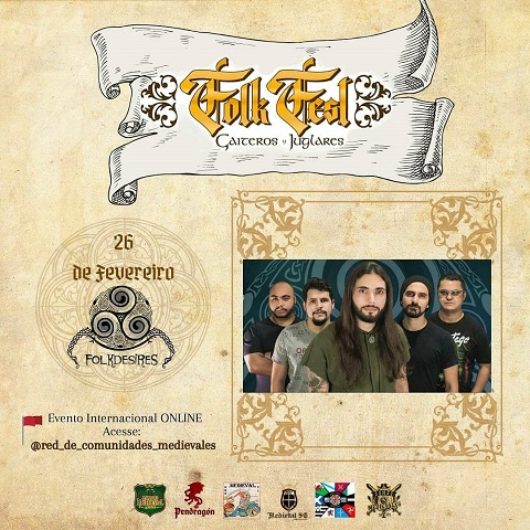 A Folkdesires participou na última sexta-feira, dia 26 de fevereiro, do festival online “Folk Fest”, evento realizado pela Rede Latino América de Comunidades Medievais (CCMMA) e organizado no Brasil pela Medieval SC. A ‘live’ contou com a participação de diversas bandas de Folk Metal da América Latina. Confira a participação do grupo clicando aqui.
