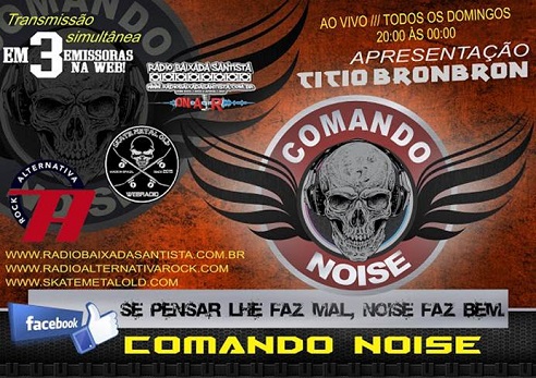 Após um ano e meio, o programa Comando Noise estará retornando ao seu formato original no próximo dia 18 de abril, a partir das 20h. O programa, criado e apresentando por José Eduardo Brondi, vulgo “Titio Bron Bron”, e que teve início em 2017 tendo como slogans “Se Pensar Lhe Faz Mal, Noise Faz Bem” e “Seja Você Sua Revolução”, e cujo lema é “Aqui Não Tem Jabá, Aqui Não Tem Censura”, volta a ocupar o espaço nas mesmas Web Rádios onde foi transmitido durante os anos de 2017, 2018 e 2019: Baixada Santista, Skate Metal Old e Alternativa Rock.