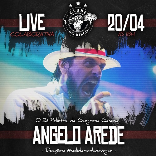 O vocalista da Gangrena Gasosa, Angelo Arede (Zé Pilintra), participa na terça-feira (20 de abril) do Clube do Risco, ‘live’ colaborativa comandada pelo lendário João Gordo. Durante o papo, os espectadores poderão efetuar doações em prol do projeto Solidariedade Vegan, que auxilia a população em situação de rua. A transmissão acontece pelo canal Panelaço, no YouTube, às 18h00.