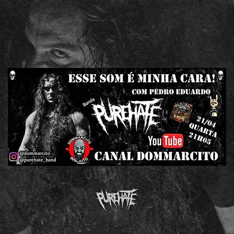 O vocalista Pedro Eduardo, dono de um dos guturais mais poderosos do Metal brasileiro e ‘frontman’ do Pure Hate, é o convidado para um bate-papo ao vivo no canal de YouTube DomMarcito, que vem se destacando por sua ajuda e abertura a vários artistas da música independente.