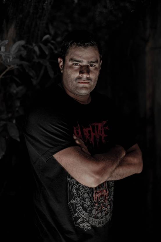 Conte como descobriu a música e o Rock and Roll (qual foi seu primeiro contato?). A música descobri com minha família, nas reuniões de fim de semana. Com muito Chico Buarque, Roberto Carlos, Zé Ramalho, Fagner, os Pholhas, Alceu Valença, Raul Seixas... Mesmo que tivesse contato com Rock nessa época da infância não era o que me despertava muito interesse. Foi com meus primos que descobri o que mudaria a minha vida. Primeiro The Offspring e Green Day, depois Iron Maiden e mais a frente o Faith No More. Essas foram as principais responsáveis a me fazer sonhar em tocar em bandas de Rock/Metal. Foram com essas bandas que eu comecei a passar maior parte da minha vida ouvindo música.