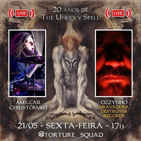 A série de ‘lives’ que o Torture Sqaud está realizando, em comemoração aos 20 anos do álbum “The Unholy Spell”, prossegue nessa próxima sexta-feira, dia 21 de maio, com a participação de “Ozzynho”, antigo dono da Destroyer Records, que lançou o trabalho. A transmissão irá ao ar a partir das 17h00 no Instagram da Torture Squad.