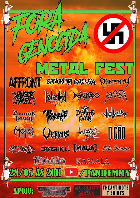 Uma entidade do Underground brasileiro, a Gangrena Gasosa, única banda de “Saravá Metal” do mundo, é uma das atrações do “Fora Genocida Metal Fest”, que acontece dia 28 de maio, às 20h00. A transmissão é pelo canal do YouTube (www.youtube.com/Pandemmy) da banda Pandemmy, que organiza o ‘fest online’.