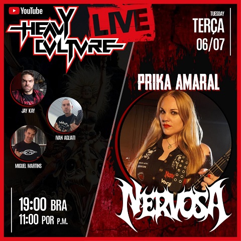 Para o mês de julho o staff preparou uma agenda de peso, iniciando com a banda Nervosa em papo com a guitarrista Prika Amaral em 06/07, seguindo com o MX dissecando o álbum “Simoniacal” em 09/07, e no dia 13/07 com o lendário Jeff Becerra, do Possessed. Já em 20/07 o Heavy Culture receberá Max Cavalera, para falar principalmente sobre seu novo projeto, Go Ahead and Die, e finalizando, no da 27/07 será a vez do guitarrista Karl Sanders bater um papo sobre o Nile. Todas as ‘lives’ serão realizadas às 19h00.