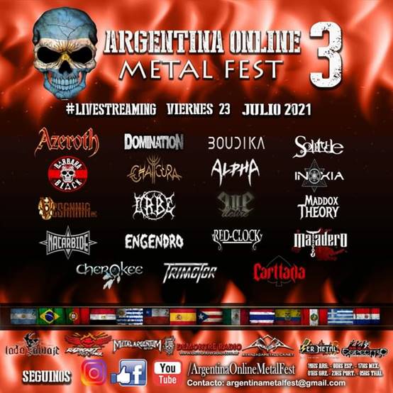 Como anunciado recentemente, o Carttada vai estar participando do festival internacional “Argentina Online Metal Fest 3”, que irá ocorrer entre os dias 23 de 25 de julho de 2021.