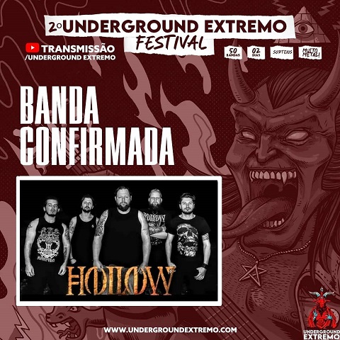 A Hollow foi confirmada na segunda edição do “Underground Extremo Festival”, que será realizado nos dias 30 e 31 de julho de 2021 com transmissão diretamente do canal do YouTube do evento: www.youtube.com/c/UndergroundExtremo.
