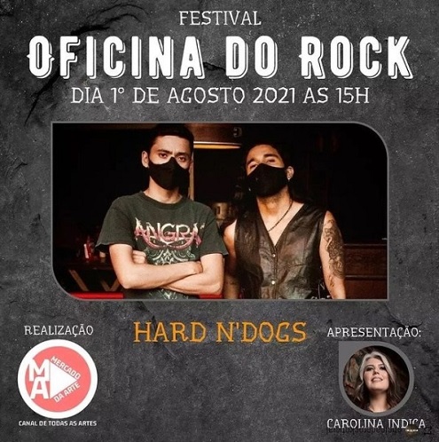 No próximo domingo, dia 01 de agosto de 2021, a Hard N’Dogs marcará presença em mais uma ‘live’. Trata-se do “Festival Oficina do Rock”, realizado pelo Mercado da Arte e cuja transmissão acontecerá a partir das 15h00 pelo YouTube, com apresentação de Carolina Indica.