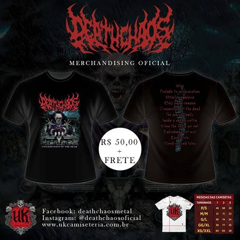 Não falta mais! A Death Chaos recorreu aos serviços da Utida Kingdom – Uk Camiseteria, selecionada pela banda em razão da qualidade do material que entregam, e agora já é possível adquirir sua camiseta com a capa do álbum, por R$ 50,00 mais o frete, em cinco opções de tamanho. Os pedidos podem ser feitos pelas redes sociais da banda no Facebook, no Instagram ou pelo próprio site da UK (www.ukcamiseteria.com.br).