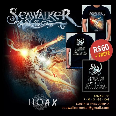 A Seawalker disponibilizou a pré-venda da sua nova camiseta oficial do single recém-lançado, “Hoax”, nos tamanhos P, M, G, GG e XGG e no valor de R$ 60,00 mais frete. As compras podem ser feitas através do e-mail [email protected].