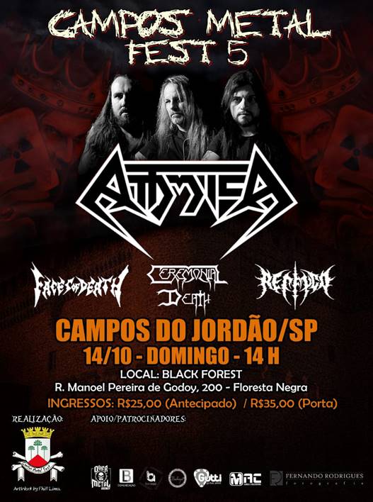 Está marcado para o dia 14 de outubro, na cidade paulista de Campos do Jordão, o “Campos Metal Fest”. O ‘fest’ chega neste ano à sua quinta edição e traz, dessa vez, em seu ‘cast’, quatro importantes bandas de São Paulo, entre elas o Attomica, que estará em turnê divulgando seu mais recente lançamento, o álbum “The Trick”.
