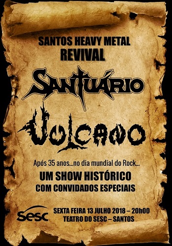 A baixada santista não será mais a mesma após este fim de semana! Isso porque a lenda do Metal Extremo Sul-americano, Vulcano e a clássica banda de Heavy Metal dos anos 80, Santuário, estarão novamente no mesmo palco celebrando o Dia Mundial do Rock.