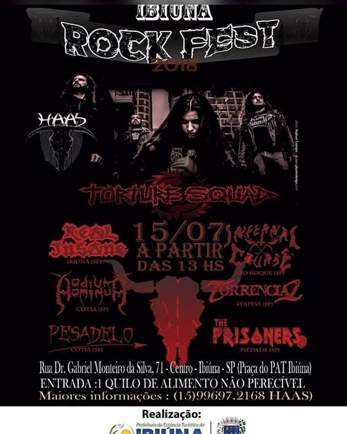 Na sequência, no dia 15 de julho, o Torture Squad estará se apresentando em Ibiúna/SP, no evento “Ibiúna Rock Fest 2018” ao lado de várias outras bandas brasileiras. Os shows serão realizados na Rua Dr Gabriel Monteiro da Silva, 71 - Centro. Mais informações aqui.