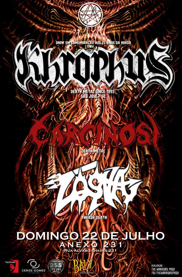 Por fim, o Khrophus viaja até a capital, Porto Alegre/RS, onde no domingo (22/07), acontecerá a vigésima primeira edição do tradicional “Podreira RS Metal Fest”. Carcinosi e Losna também foram confirmados. Para mais informações clique aqui.