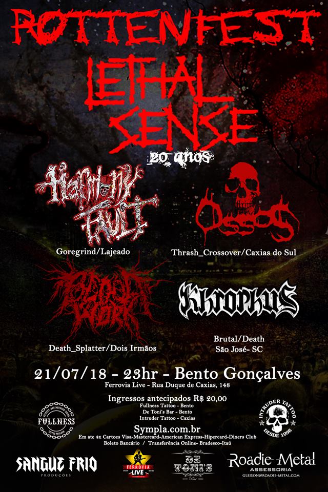 Serviço: RottenFest Lethal Sense Atrações: Ossos – Lethal Sense – Harmony Fault – Krophus – BloodWork