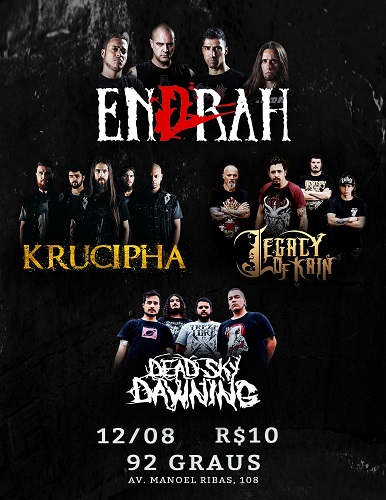 Além de conferir o show do Krucipha, os presentes no evento terão a oportunidade de assistir as bandas Legacy of Kain, Endrah e Dead Sky Dawning. Início as 17h00 do domingo com entrada sendo vendida por R$ 10,00 na portaria. Mais informações aqui.