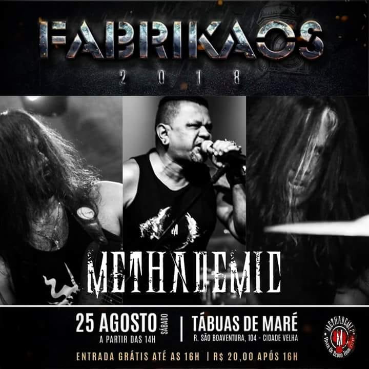 No dia 25 de agosto a Methademic estará participando do “Fabrikaos Festival”, dividindo o palco com excelentes bandas do cenário paraense e mostrando toda a força do seu Prog Metal diferenciado e empolgante.