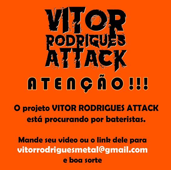Após poucos meses de comunicar sua saída oficial do Voodoopriest, o renomado vocalista brasileiro Vitor Rodrigues (ex-Torture Squad) dá início a retomada de sua importante carreira, informando que está em aberto o processo de audição para bateristas interessados em se juntar ao seu projeto Vitor Rodrigues Attack.