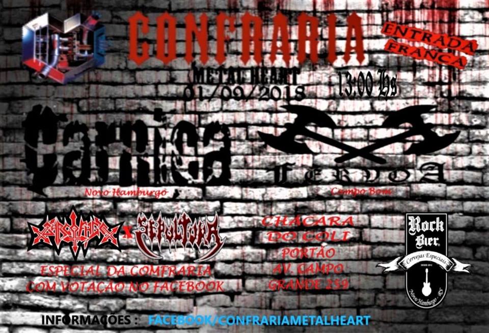 Sábado (01 de setembro) a Carniça retorna a Campo Bom/RS para mais um show de divulgação de seu novo álbum – “Carniça” – onde tocarão no “Confraria Metal Heart”. A banda dividirá o palco com Fervoa.