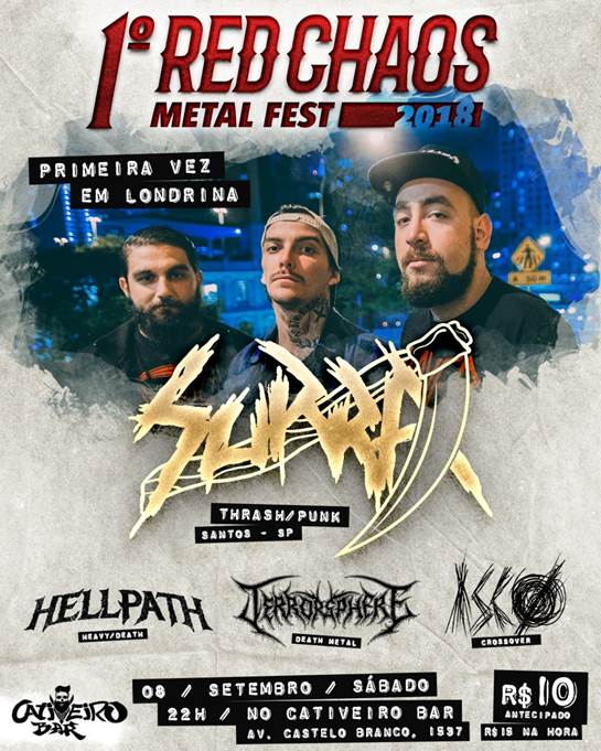 A grande cidade paranaense de Londrina receberá no dia 08 de setembro, no sábado, em pleno feriadão do Dia da Independência, a primeira edição do “Red Chaos Metal Fest”, um evento que promete ficar no calendário Metálico da cidade e movimentar sua ativa cena. Dentre as atrações escaladas para este evento está o grande nome do Death Metal londrinense, Terrorsphere.