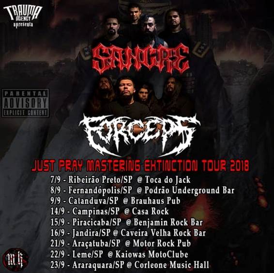 O mês de setembro será agitado para a banda Forceps. O grupo carioca terá nove apresentações no estado de São Paulo em uma tour conjunta com o grupo Sangre.