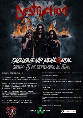A banda alemã de Thrash Metal Destruction mais uma vez se apresentará em diversas cidades do Brasil. Mas uma das apresentações será especial e acontecerá somente na cidade de São Paulo.