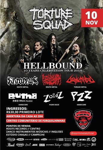 Um dos maiores nomes do Metal nacional, a banda Torture Squad, está realizando uma turnê no sul do Brasil, em comemoração aos 10 anos do lançamento do álbum “Hellbound”, considerado um dos grandes clássicos do Metal nacional.