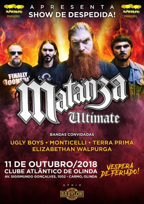 O Matanza virá para Pernambuco pela última vez, e o Elizabethan Walpurga está no ‘cast’. Será dia 11 de outubro, em Olinda, no Clube Atlântico de Olinda, Avenida Sigismundo Gonçalvez, Bairro do Carmo. Participam também as bandas Ugly Boys, Terra Prima e Monticelli.