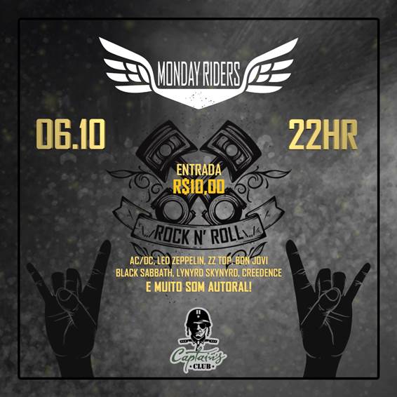 O evento será realizado no tradicional Captains Club na cidade de Goiânia e situado na Alameda das Rosas, 1461, Setor Oeste. O show do Monday Riders terá início as 22h00 pontualmente. Maiores informações sobre o local: www.facebook.com/captainsclub.
