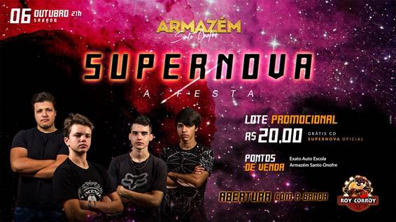 Custo: R$ 20,00 (Pista + CD Supernova) – R$ 30,00 (Área Vip + CD Supernova)
