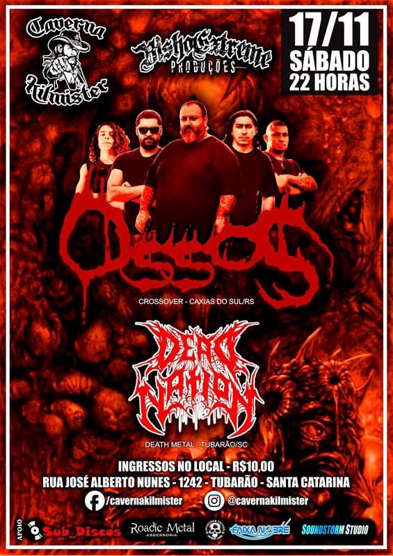 No dia 17 de novembro o Ossos estará invadindo a cidade de Tubarão/SC para uma apresentação única na cidade.