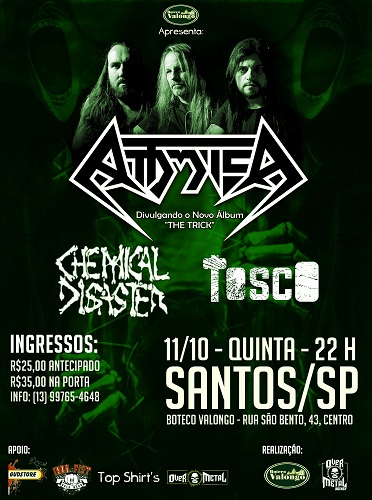O Attomica retorna a Santos/SP depois de cinco anos para um show especial. Pela primeira vez a banda sobe ao palco do Boteco Valongo e traz um show especial: show de lançamento do álbum novo, “The Trick”. O show faz parte da Turnê “You Bet Tour Parte 1” que passará pelo sul e sudeste do país nesta primeira parte.