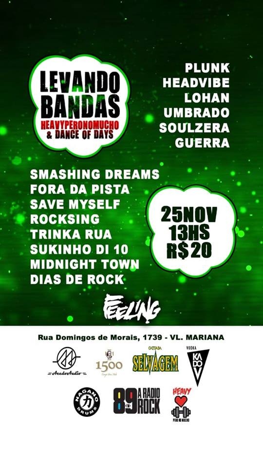 O evento acontece a partir das 13h00, no Feeling, que fica na Vila Mariana, na Capital Paulista. Uma dezena de bandas se apresentará no espaço. Ingressos antecipados e todas as informações podem ser conferidas aqui.