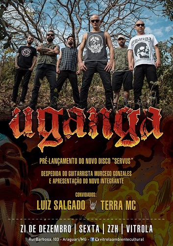 “Servus”, novo disco do Uganga, está quase pronto. Com produção de Gustavo Vazquez e do vocalista Manu “Joker”, o quinto álbum de estúdio do grupo mineiro, sucessor do aclamado “Opressor” (2014), está sendo financiado por dois relevantes prêmios, o Wacken Foundation, organização alemã sem fins lucrativos idealizada em 2008 pelos produtores do Wacken Open Air - o maior festival de Heavy Metal do mundo - e que apoia projetos de Hard Rock e Heavy Metal de todas as partes do mundo, tendo nomes como o de Alice Cooper entre os doadores, e também pelo Programa Municipal de Incentivo à Cultura (PMIC) de Uberlândia, Triângulo Mineiro, de onde a banda é originária.