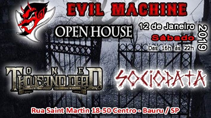 Um dos nomes mais ativos do Death Metal brasileiro na região de Bauru/Agudos, interior de São Paulo, One Thousand Dead, acaba de confirmar a primeira data de 2019. A banda se apresenta dia 12 de janeiro no evento “Open House – E.M.M.C”, que será realizado em Bauru/SP.