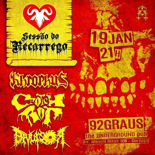 Trata-se da “Sessão do Recarrego”, onde o trio dividirá palco com Divulsor e CrotchRot. O evento ocorre neste fim de semana, dia 19/janeiro/2019, no já conhecido 92° - The Underground Pub. Para mais informações clique aqui.