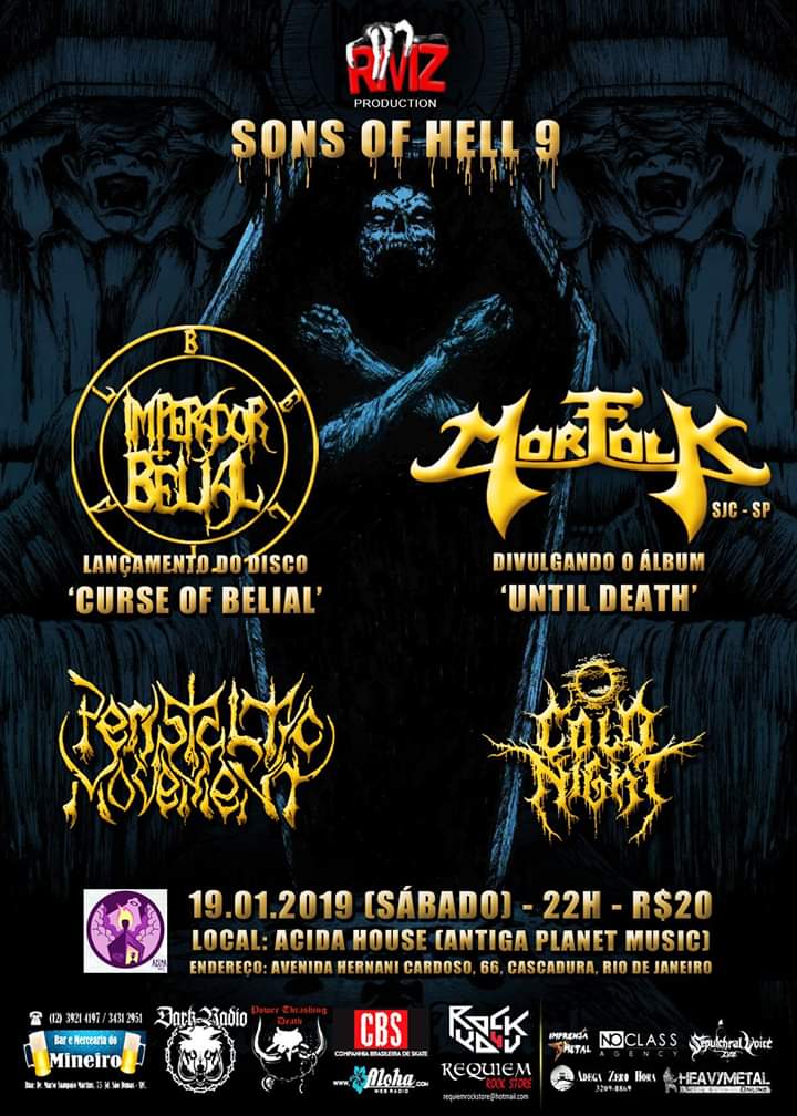 O grupo estará presente na nona edição do “Sons Of Hell”, que acontece hoje, dia 19/janeiro, no Acida House (antiga Planet Music), no Rio de Janeiro/RJ. Também estarão presentes neste evento as bandas Morfolk, Cold Night e Peristaltic Movement. Para mais informações clique aqui.