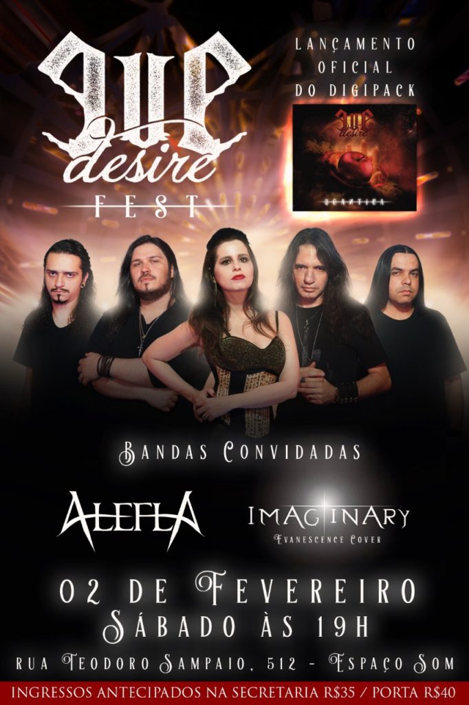 A banda Eve Desire promove o lançamento do digipack “Quantica” com uma apresentação especial que será realizada no dia 02 de fevereiro, no Espaço Som, em São Paulo. O evento conta ainda com as bandas convidadas Alefla e Imaginary (Evanescence Cover).