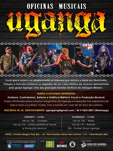 Como contrapartida ao incentivo recebido pela PMIC de Uberlândia, os seis integrantes do Uganga realizam em fevereiro uma série de oficinas musicais. Serão quatro oficinas gratuitas diferentes: Guitarra, Contrabaixo, Bateria e Estética/Métrica Vocal e Produção Musical. Todas serão ministradas pelos próprios integrantes do Uganga e baseadas nas experiências reais e bem-sucedidas vividas com a banda ao longo de mais de 20 anos de carreira.