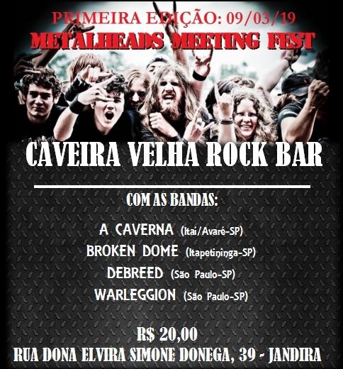 Local: Caveira Velha Rock Bar. Rua Dona Elvira Simone Donega, 39. Jandira/SP