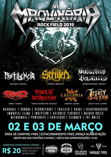 O festival, que dessa vez acontecerá na Chácara Vale do Paraíso, em Guarapuava/PR, contará com nada mais, nada menos que 22 atrações, dentre elas estão Fusileer, Embrio, Slammer, Immortal Flame, Order Of Descruction e muito mais. Acesse o evento no Facebook para mais informações.