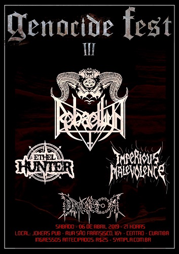 A banda estará na terceira edição do “Genocide Fest”, ao lado de Ethel Hunter, Divulsor e Rebaelliun. O evento acontecerá no dia 06/04/2019 no Jockers Pub em Curitiba/PR. Para mais informações clique aqui.