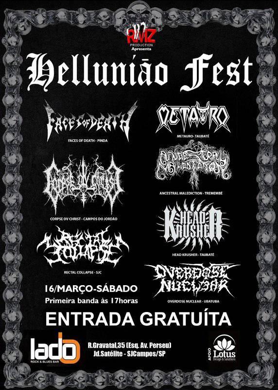 A banda Overdose Nuclear tocará amanhã, sábado, 16/03/2019, na cidade de São José dos Campos/SP, no “Hellunião Fest”, ao lado das bandas Rectal Collapse, Metauro, Corpse of Christ, Head Krusher, Faces of Death e Ancestral Malediction. O evento, gratuito, será realizado no Lado B Rock Bar, localizado na Rua Gravataí 35, com abertura do bar às 17h00.