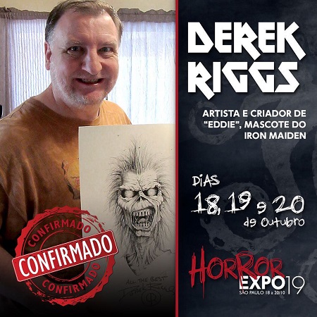 Derek Riggs, lendário artista britânico que se tornou mundialmente conhecido por ter criado inúmeras capas de álbuns e singles do Iron Maiden, é a mais recente atração confirmada para a Horror Expo 2019. O maior evento focado na cultura do horror já realizado na América Latina, abrangendo cinema, TV, streaming, games, literatura e cultura pop, será realizado entre os dias 18 a 20 de outubro de 2019 no Expo Center Norte, em São Paulo/SP.