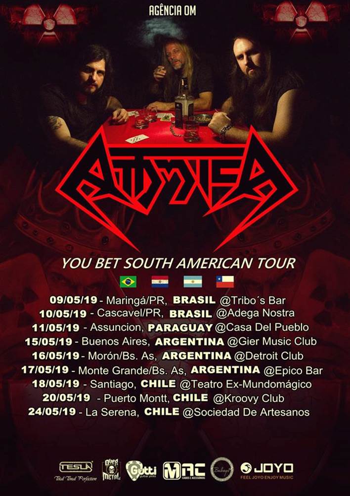 Um dos principais nomes do Thrash Metal brasileiro, o Attomica, apresenta oficialmente as datas de sua mais nova tour sul-americana, que terá passagens pelo sul do Brasil, Paraguai, Argentina e Chile.